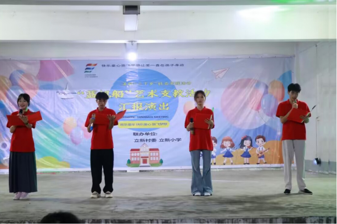 立新小学同学在当地文化下乡演出中表演朗诵