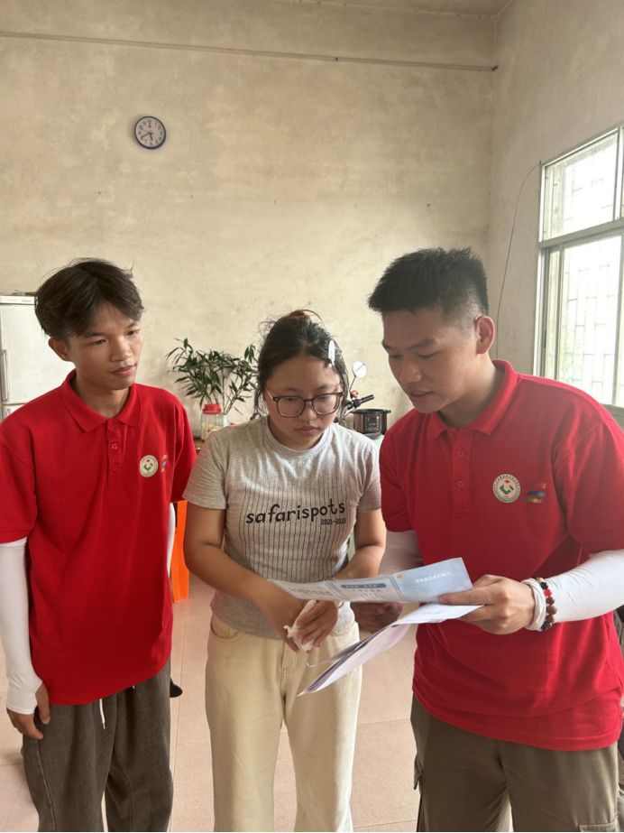 7月11日至12日,实践团跟随着驻村第一书记走村入户,为村民们发放推普宣传手册,详细讲解普通话的实用性,科学系统地传授普通话基础知识。通过推广宣传,让国家通用语言文字真正走进群众的心里。此外,在推普过程中,实践团运用“推普技能+”方式,将推普与预防网络电信诈骗知识相结合,向当地村民讲解预防网络电信诈骗的方法以及常见的诈骗方式,提高村民对电信网络诈骗的鉴别能力和防范意识。