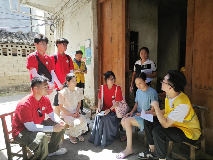 实践团成员与驻村第一书记走村入户推广普通话