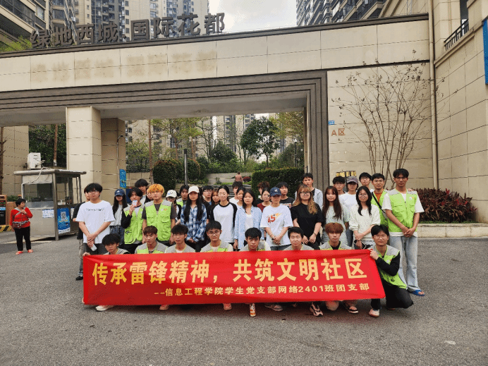 (图文/李泳仪)为增强班级凝聚力,弘扬传承雷锋精神,将班级团建与服务社会紧密融合,2025年3月26日,信息工程学院网络2401班全体同学走进南宁市西乡塘区绿地西城·国际花都,开展社区美化志愿服务活动。