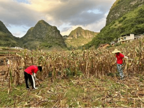 墙绘落成,队员们的服务热情并未停歇。得知部分农户因劳力短缺,玉米地的秸秆尚未清理,团队负责人当即决定“画里的初心,要落到田埂上。”队员们拿起镰刀,走进玉米地。烈日下,他们弯腰挥汗,收割秸秆。“这些孩子真能吃苦!”村民们的称赞是对他们最好的肯定。
