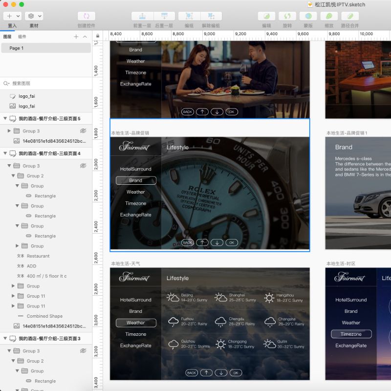 上海松江凯悦五星酒店iptv项目,UI部分使用sketch完成