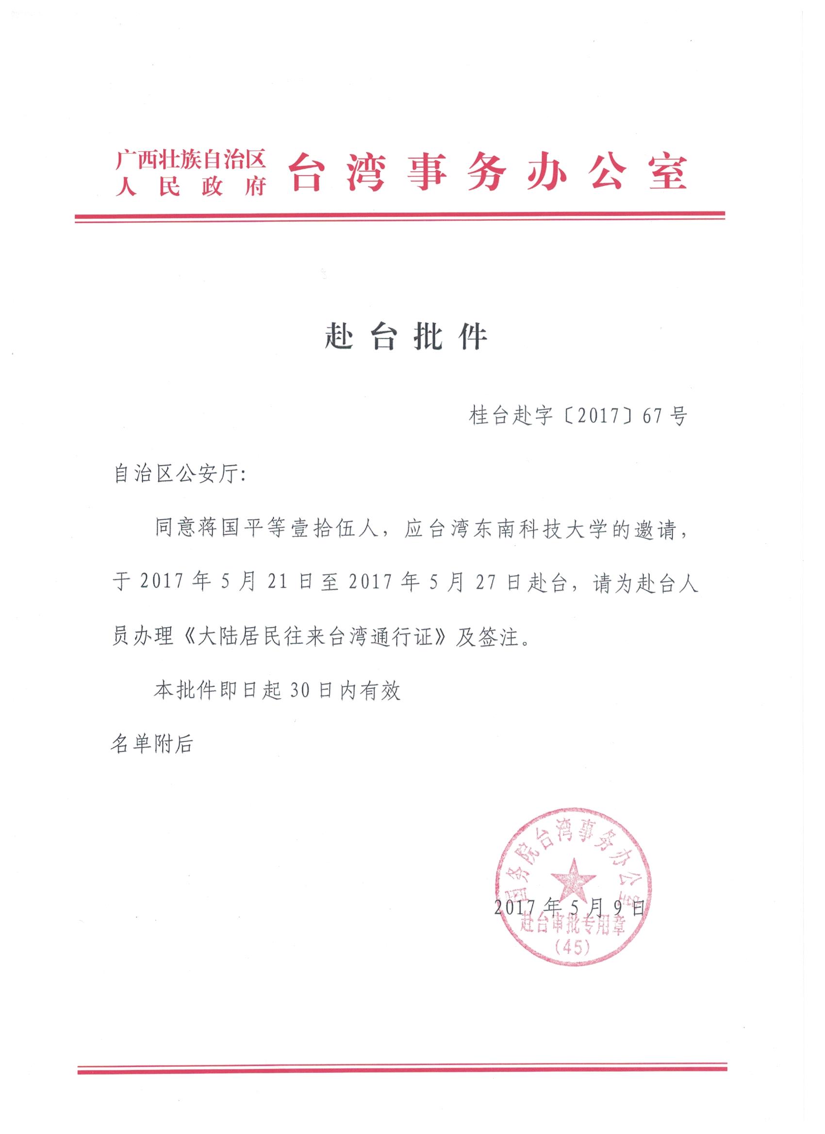 1.关于组织教育代表团赴台参加2017年桂台经贸文化交流合作系列活动及第四届桂台高等教育高峰论坛的通知.pdf 2.因公出国(境)经费审核表.pdf
