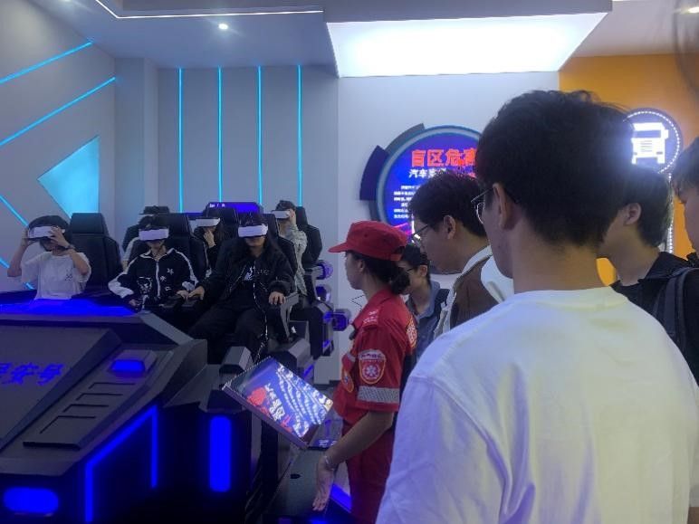 “工伤预防文创大赛”启动仪式先由潘荣华调研员给大家详细讲解预防工伤的知识科普,让大家了解什么情况是工伤、工伤应该如何预防,同时对大赛的要求进行了说明并宣布赛事启动。随后在主办方安排下,我院师生参观了“壮小安”应急安全科教中心,在教官的指导下,同学们参与了心肺复苏 CPR 、模拟驾驶体验、地震逃生、高空缓降、6人VR飞船等项目的学习。