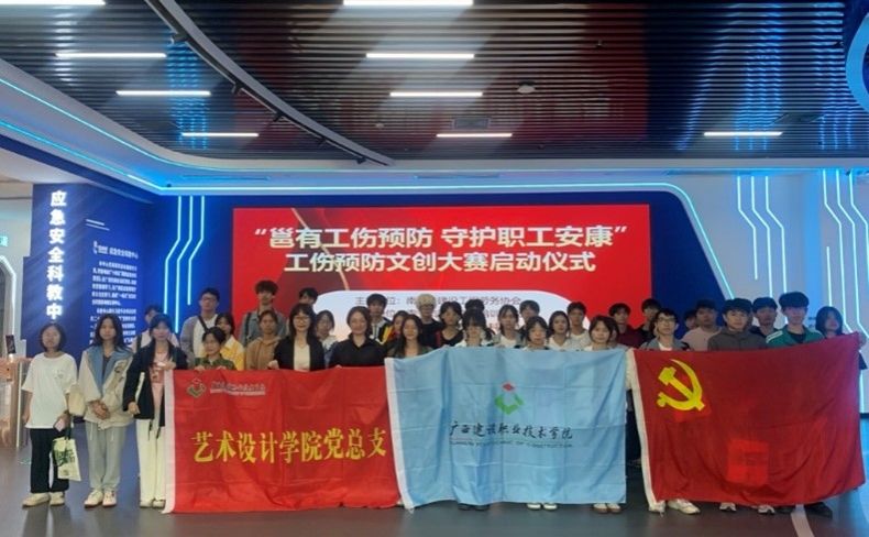 (艺术设计学院 文/图:王潇)2024年10月27日,由艺术设计学院党总支书记陈菲菲带队,王潇老师及2024级艺术设计专业学生代表组成的团队参加了广西“壮小安应急安全科教中心”承办的“工伤预防文创大赛”启动仪式。