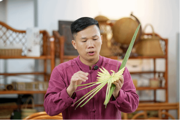 徐炎铭老师展示棕编孔雀 |
