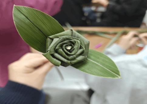 学员完成精致的棕编玫瑰花 |