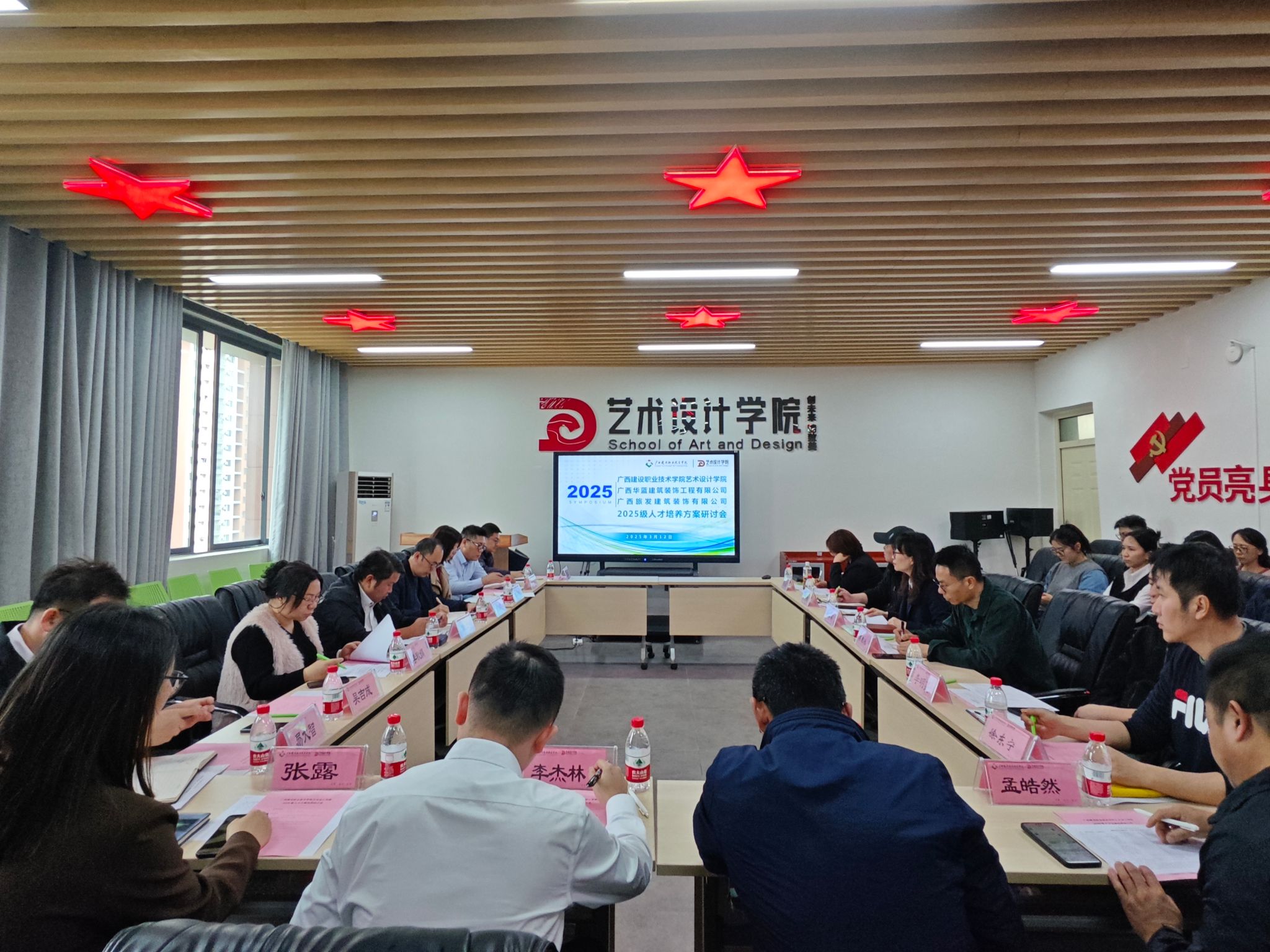 伟德国际1946源于英国316日讯(艺术设计学院 /张苑 /曾睿)312日下午,艺术设计学院在61115会议室举办校企协同育人研讨会暨人才培养方案论证会。广西华蓝建筑装饰工程有限公司、广西旅发建筑装饰工程有限公司等企业共派出12位中高层管理者和业务专家,与学院教师深入探讨建筑装饰工程技术、建筑室内设计、环境艺术设计、家具艺术设计、古建筑工程技术等5个专业的人才培养新路径与新方法。艺术设计学院领导、各团队带头人及建筑装饰工程技术专业群教师参会会议由学院党总支书记、副院长(主持工作)陈菲菲主持。