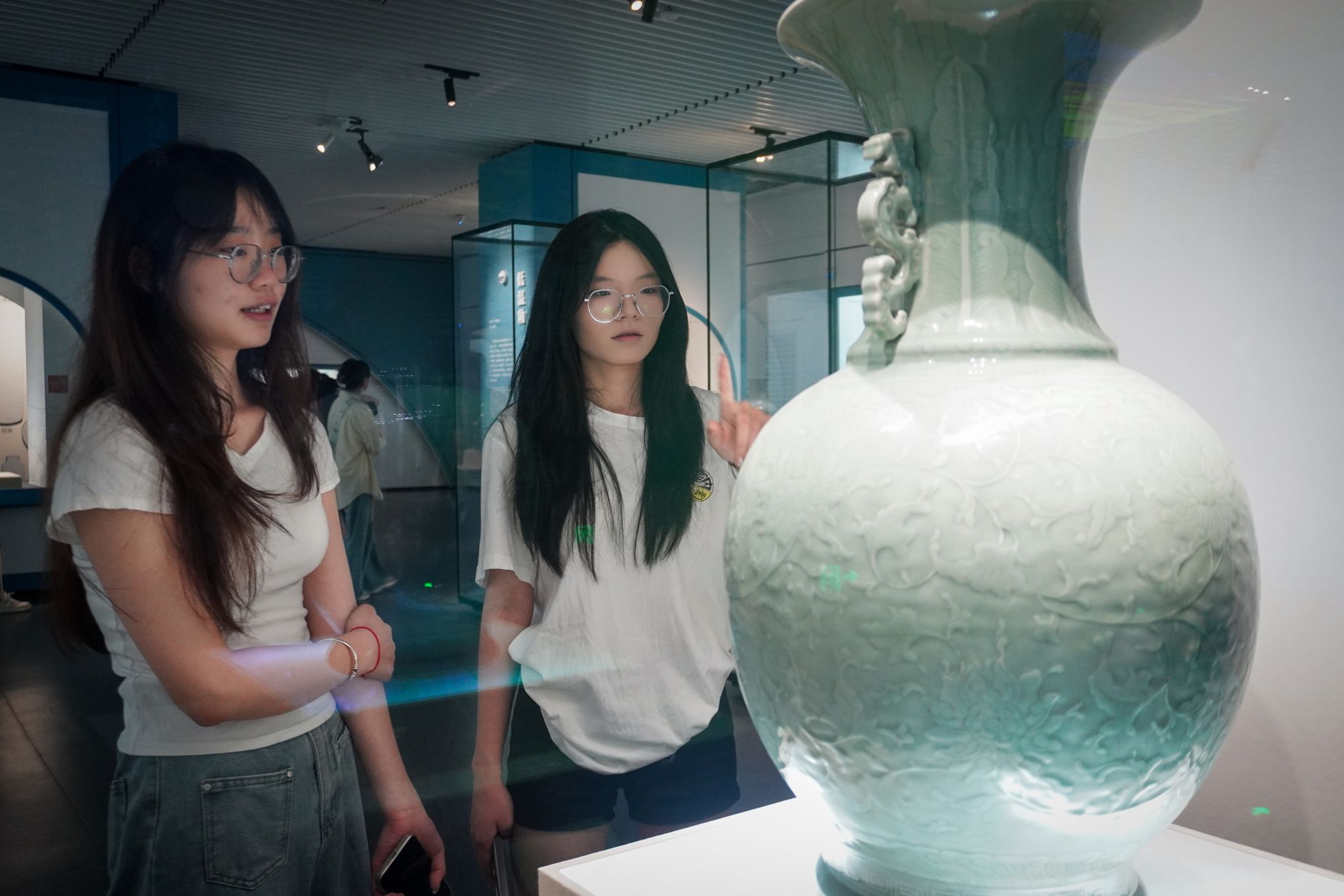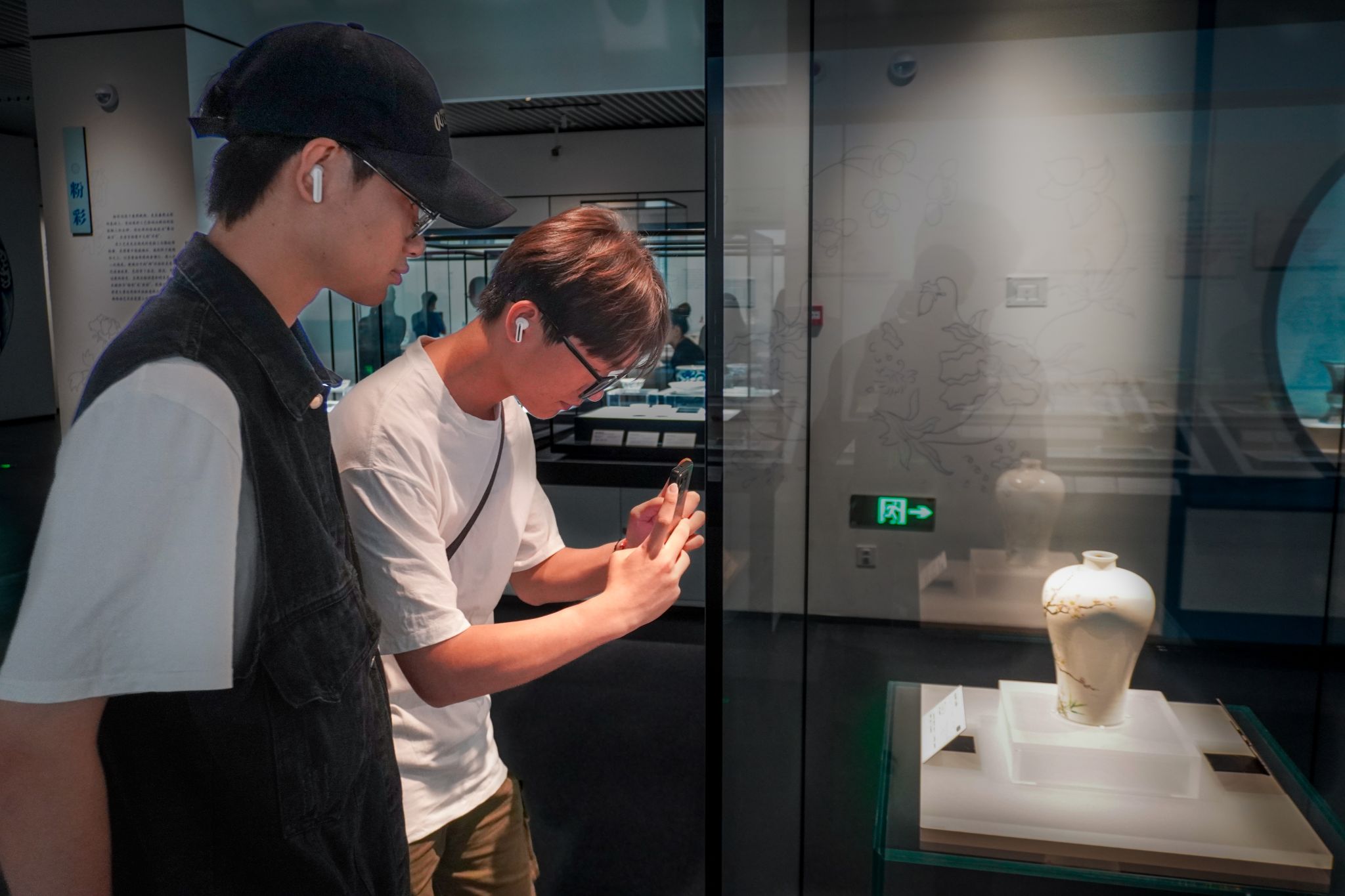 同学现场拍摄文物细节,计划通过数字化建模重构传统美学意象