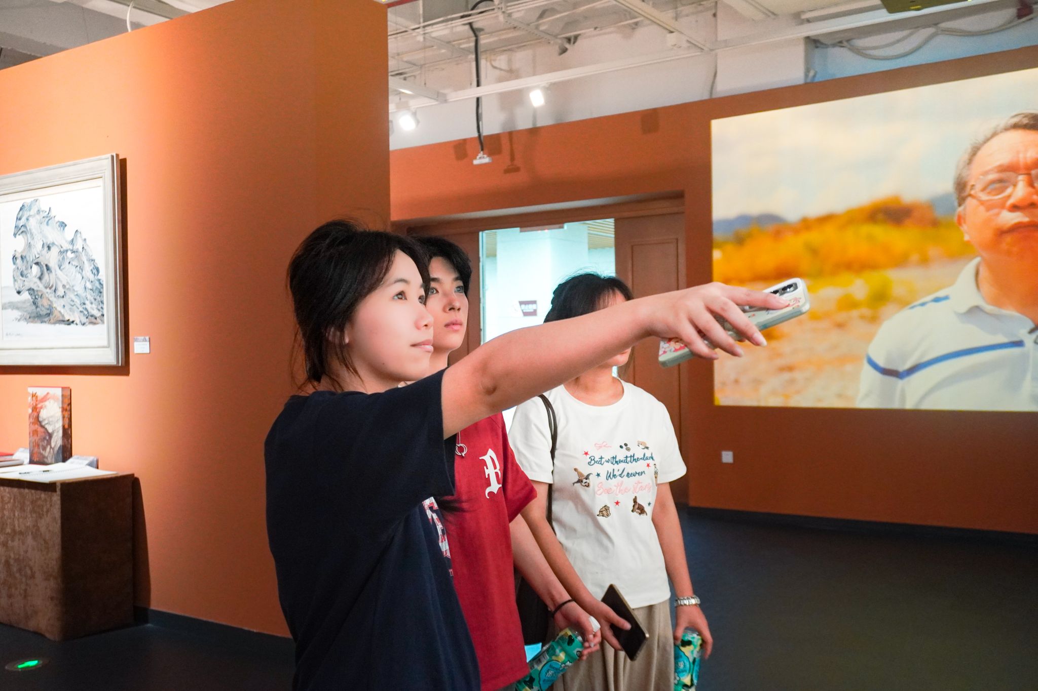 同学们驻足于山水长卷与文人小品前,从墨色浓淡、构图留白中体悟传统美学的意境表达