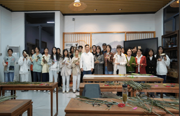 师生在学校民族文化传承基地参加棕编技艺传承培训