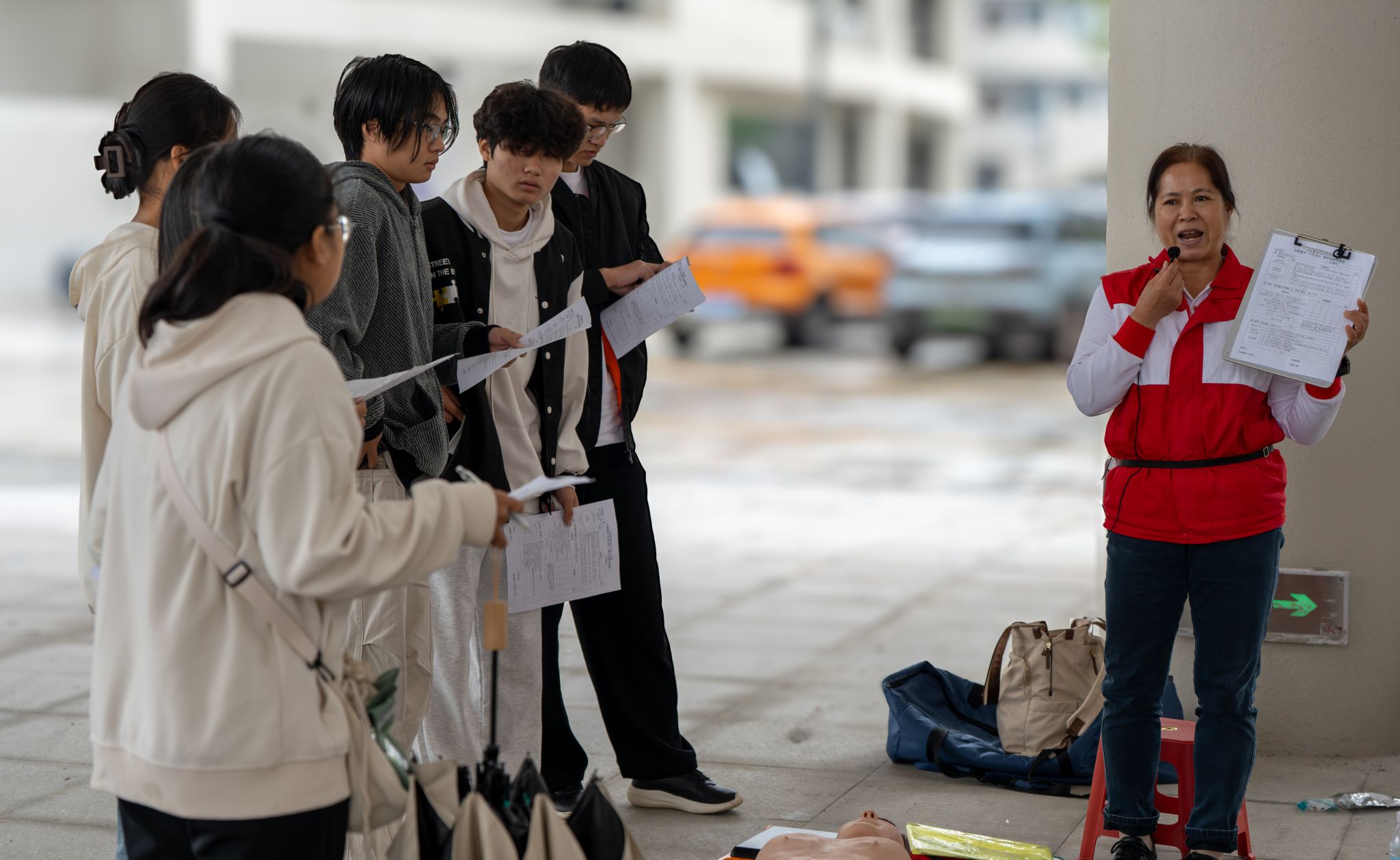 红十字会导师指导学生学员进行实操训练-胸外按压