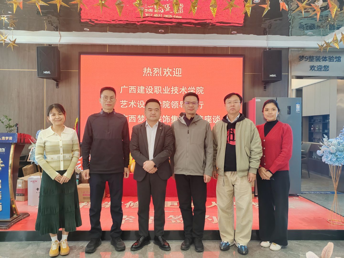 走访团队在梦居装饰工程有限公司(钦州分公司)与企业代表合影