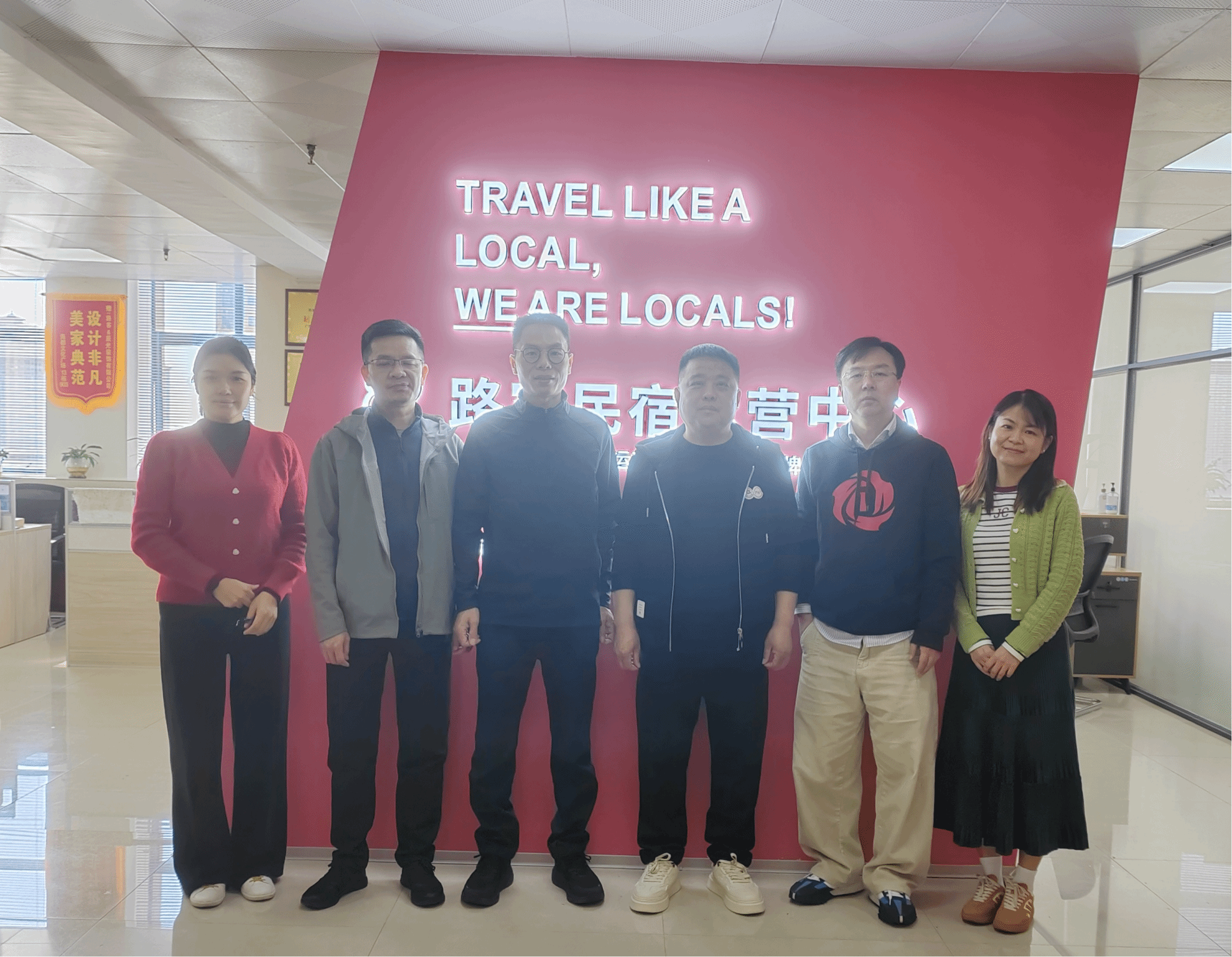 走访团队在广西防城港路客民宿运营中心与企业代表合影