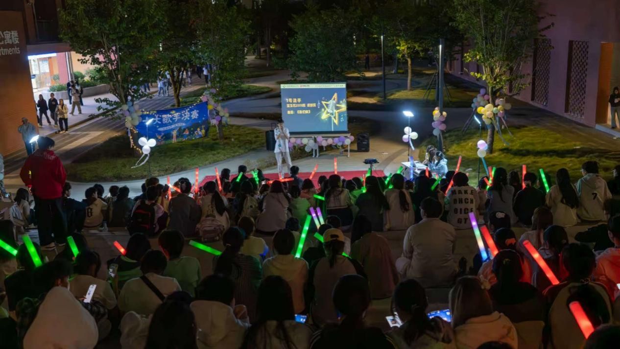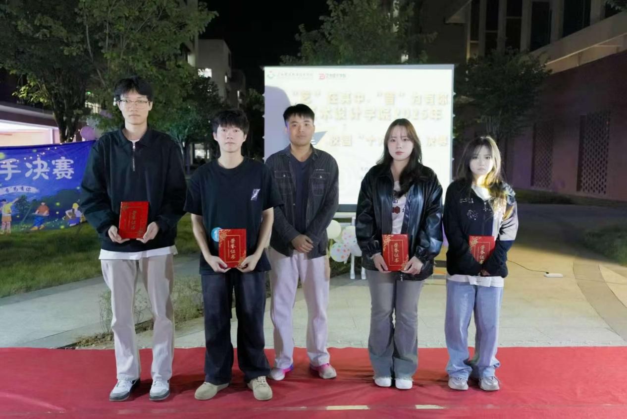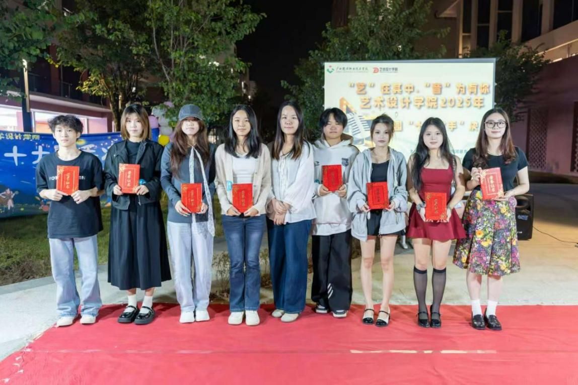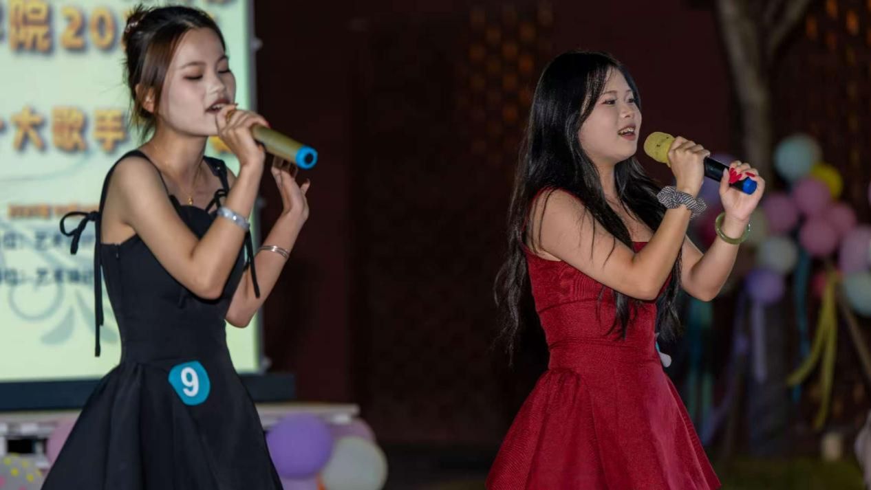 为丰富校园文化生活,营造积极向上、富有艺术气息的校园文化氛围,艺术设计学院于10月28日晚,在武鸣校区一号教学楼户外阶梯空地为同学们举办了一场以“‘艺’在其中 ‘音’为有你”为主题的校园“十大歌手”比赛。本次活动由艺术设计学院团总支主办,艺术设计学院学生会承办,本次比赛共有2024级、2025级60余名选手报名,经过海选共有15名选手晋级比赛,学院团总支书记与2025级辅导员出席活动并担任评委。