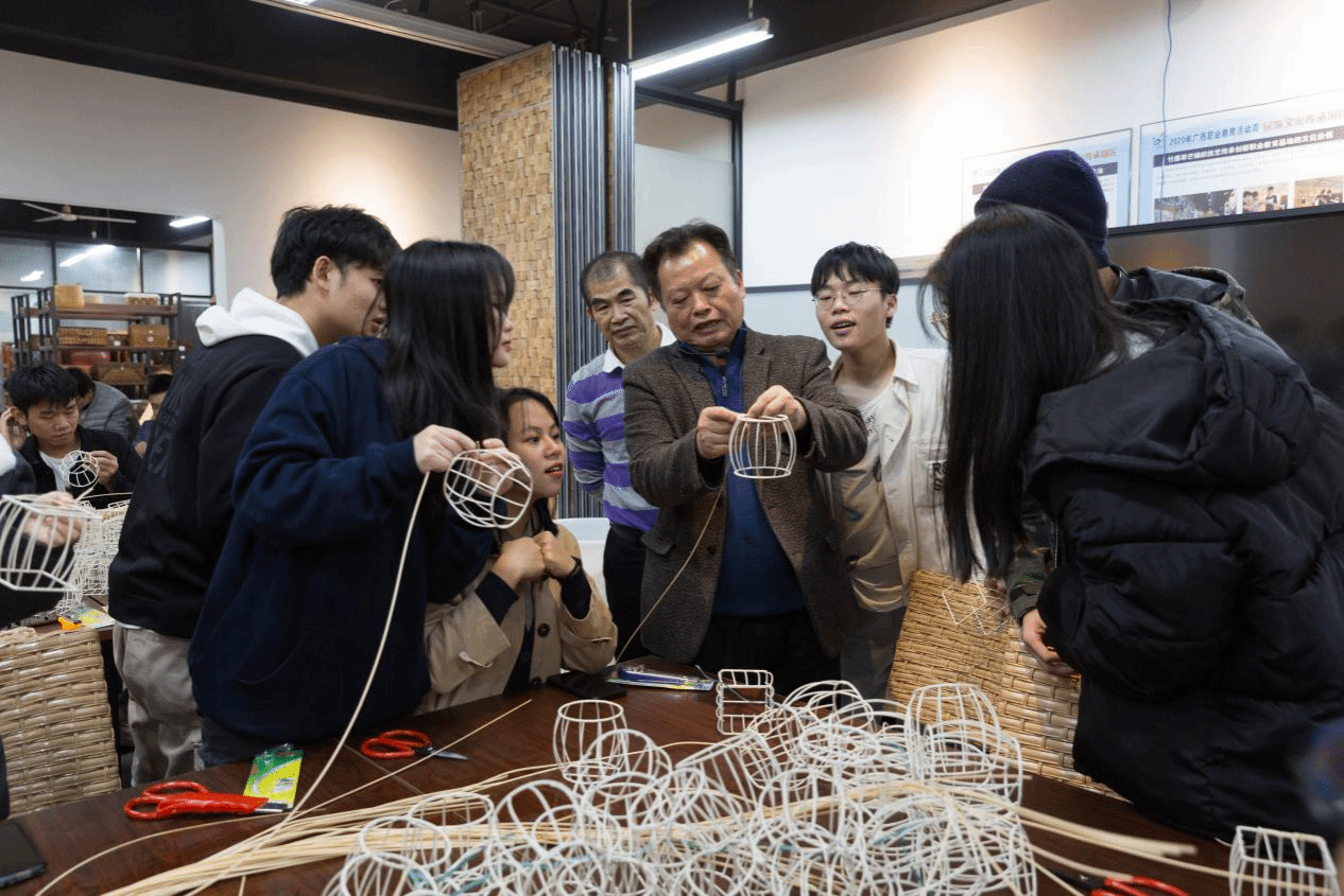 广西工艺美术大师莫承振先生向伟德国际官网师生传授芒竹编技艺