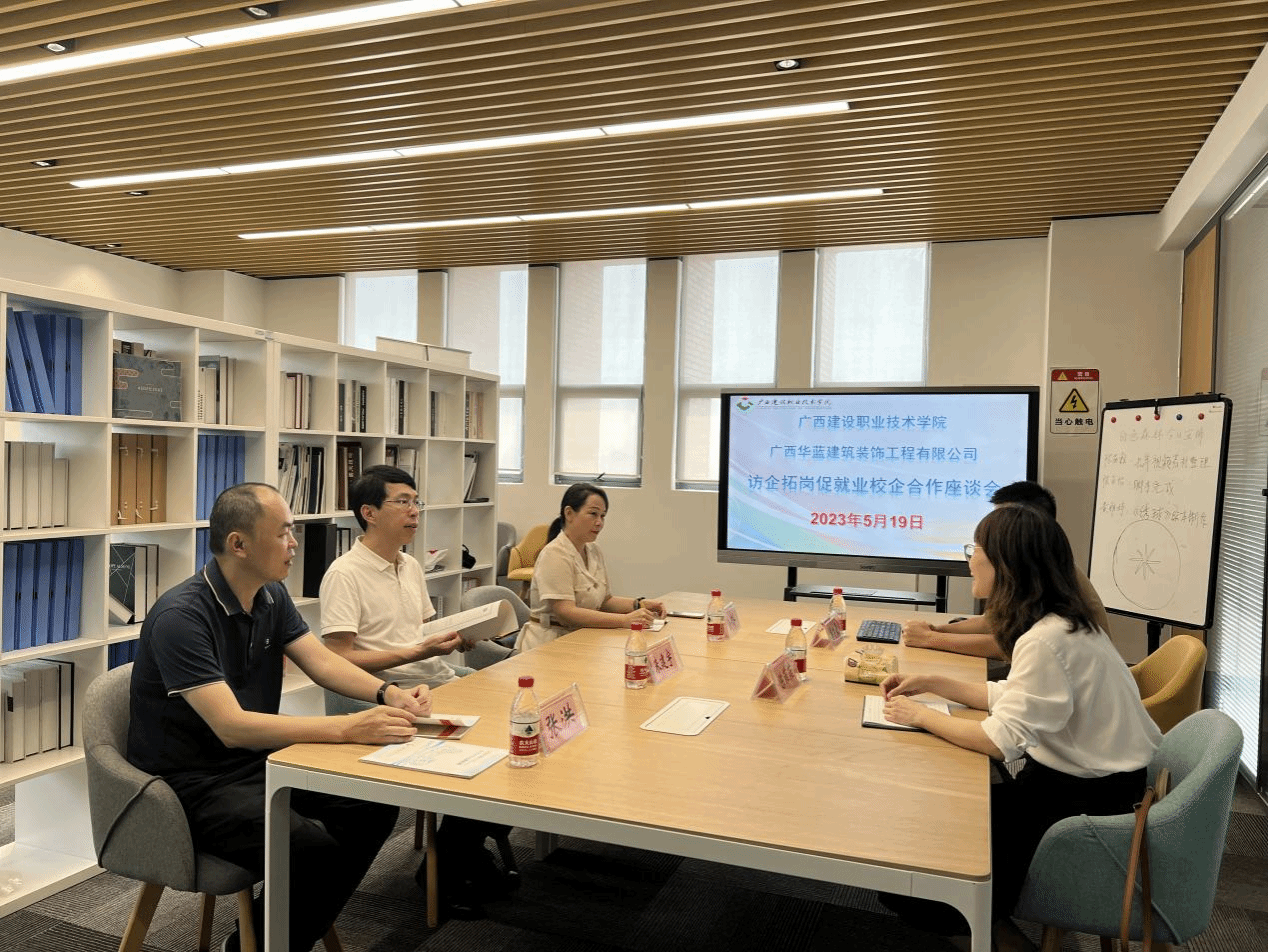在与广西华蓝建筑装饰工程有限公司的交流中,校企双方回顾了近年的合作经历。陈副院长肯定了华蓝装饰为伟德国际官网人才培养做出的贡献。接下来,学院将加强与华蓝装饰的合作力度,利用好企业资源,校企合力推进建筑装饰工程技术专业的发展,同时力争将我院校中厂“现代学徒制装修一体化部件研发与实训中心”建设成集研发、展示、实训为一体的示范性实训基地。