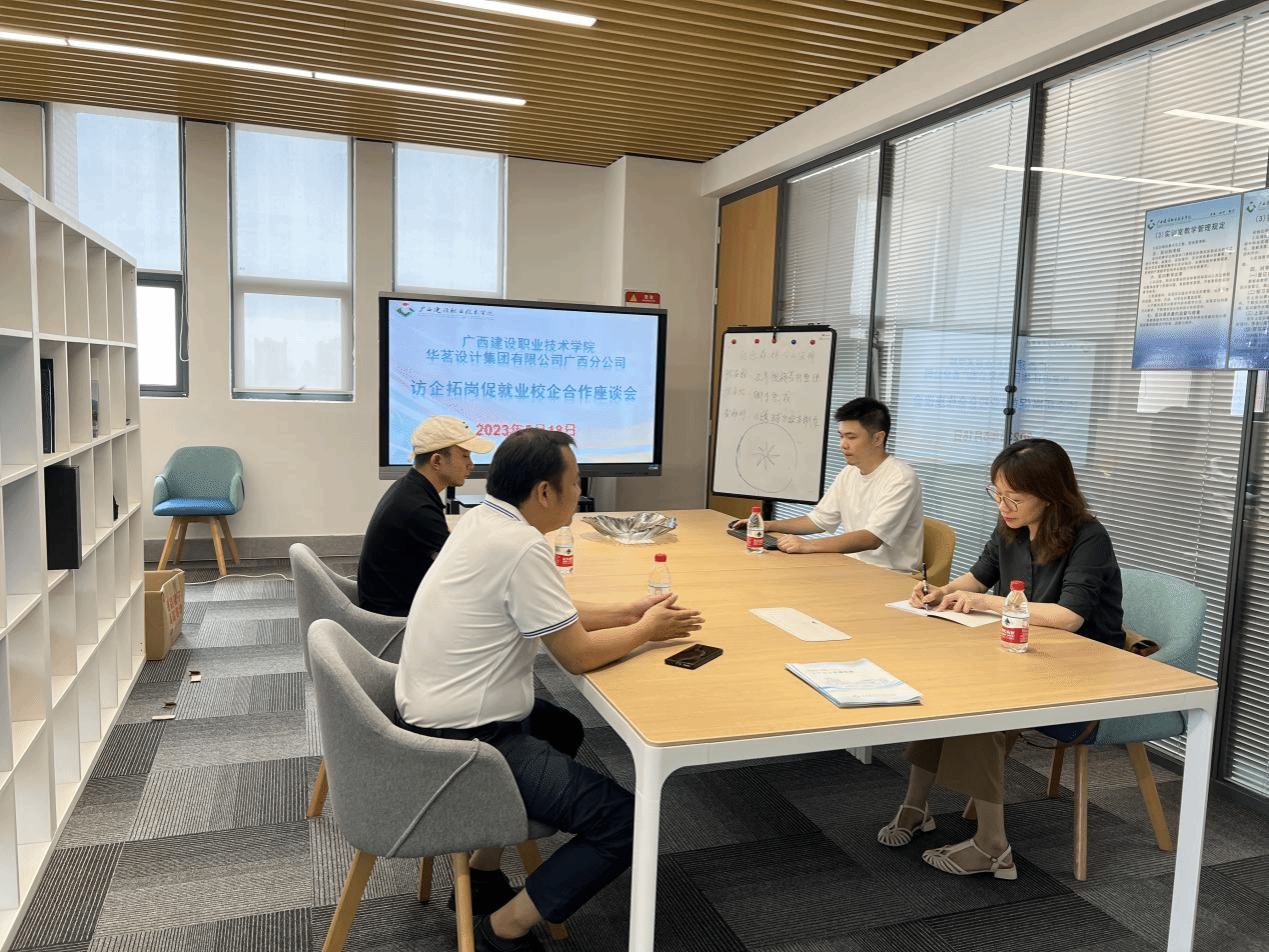 为贯彻落实“访企拓岗促就业”专项行动工作要求,深化产教融合,提高毕业生就业竞争力,深化校企合作,我院积极邀请行业优质企业进校合作交流。2023年5月18-19日分别邀请了华茗设计集团有限公司广西分公司、广西华蓝建筑装饰工程有限公司进校座谈,艺术设计学院陈菲菲副院长(主持行政工作)接待了来访企业,双方就共建校内实习实训基地、人才培训、师资互培等方面进行了交流和探讨。