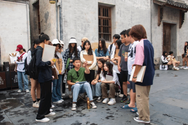 参加本次教学活动的师生一行抵达安徽西递村后,带队教师农家向同学们讲授了写生第一课,指出此次实训活动是提高同学们绘画素养,结合专业方向掌握描摹村落与建筑形态方式方法的高阶美术创作课程,中华传统文化源远流长、博大精深,同学们通过本次写生实践课程,要将传统文化研习和践行社会主义核心价值观相结合,进一步提升对中华优秀传统文化的认知水平。