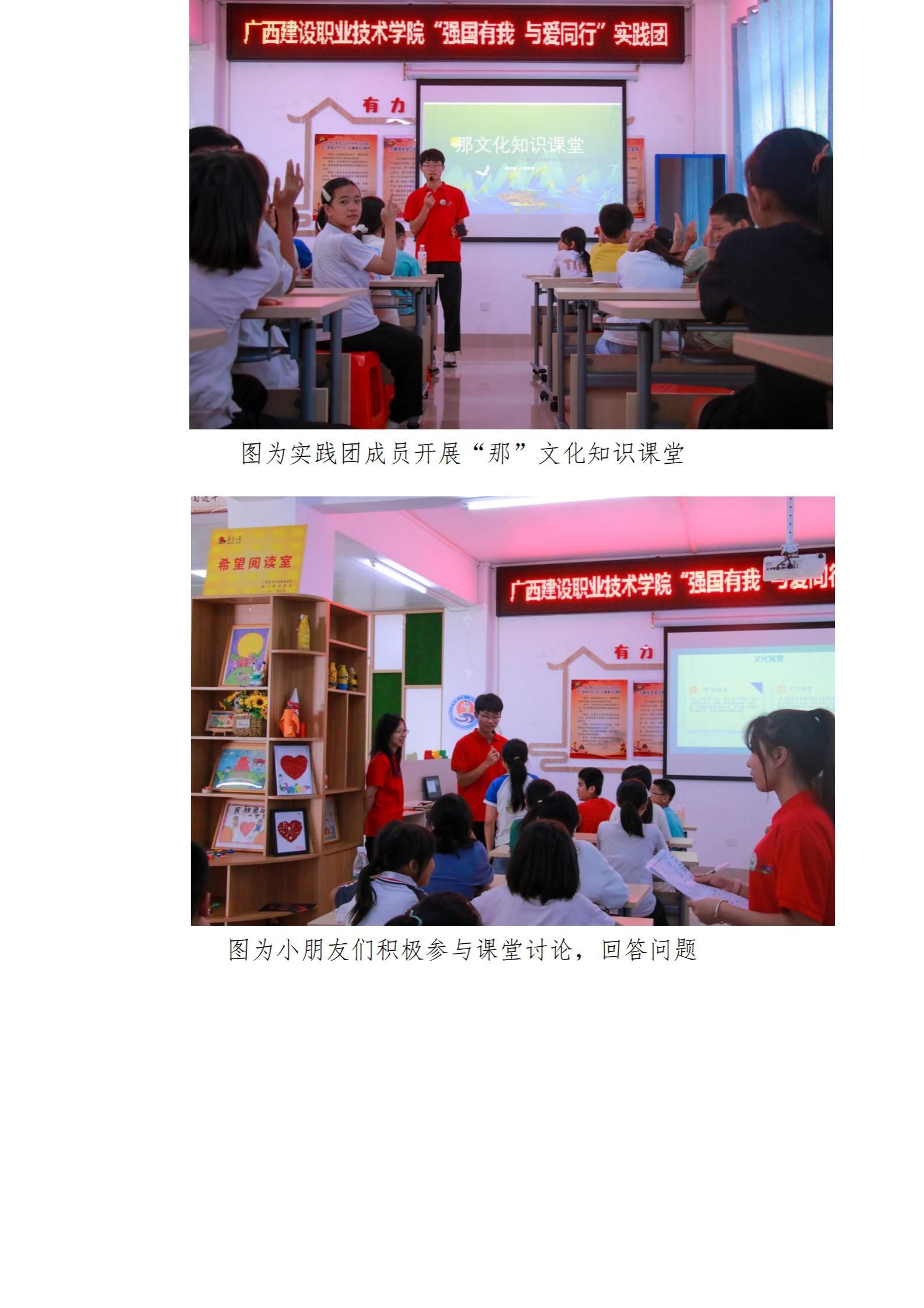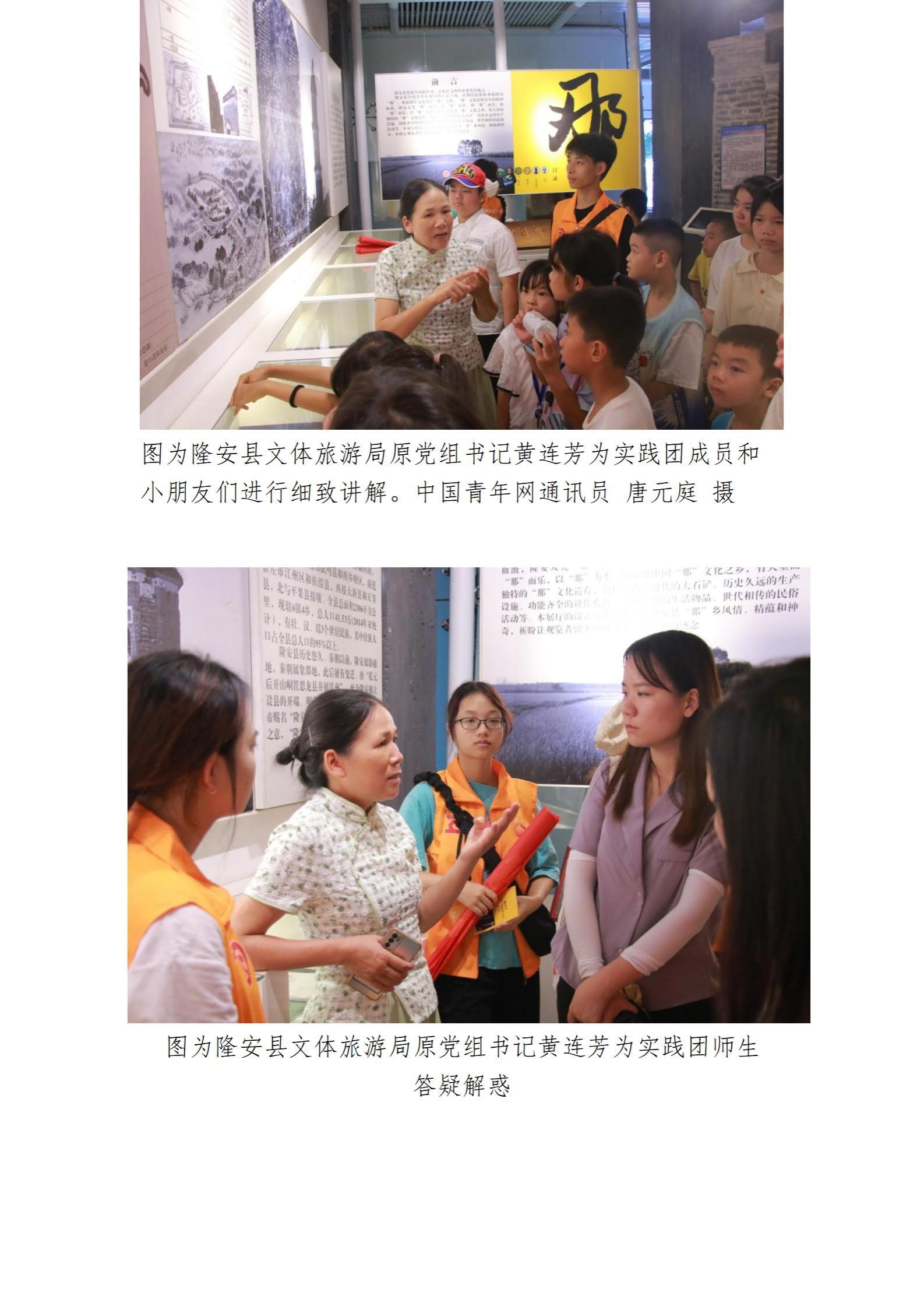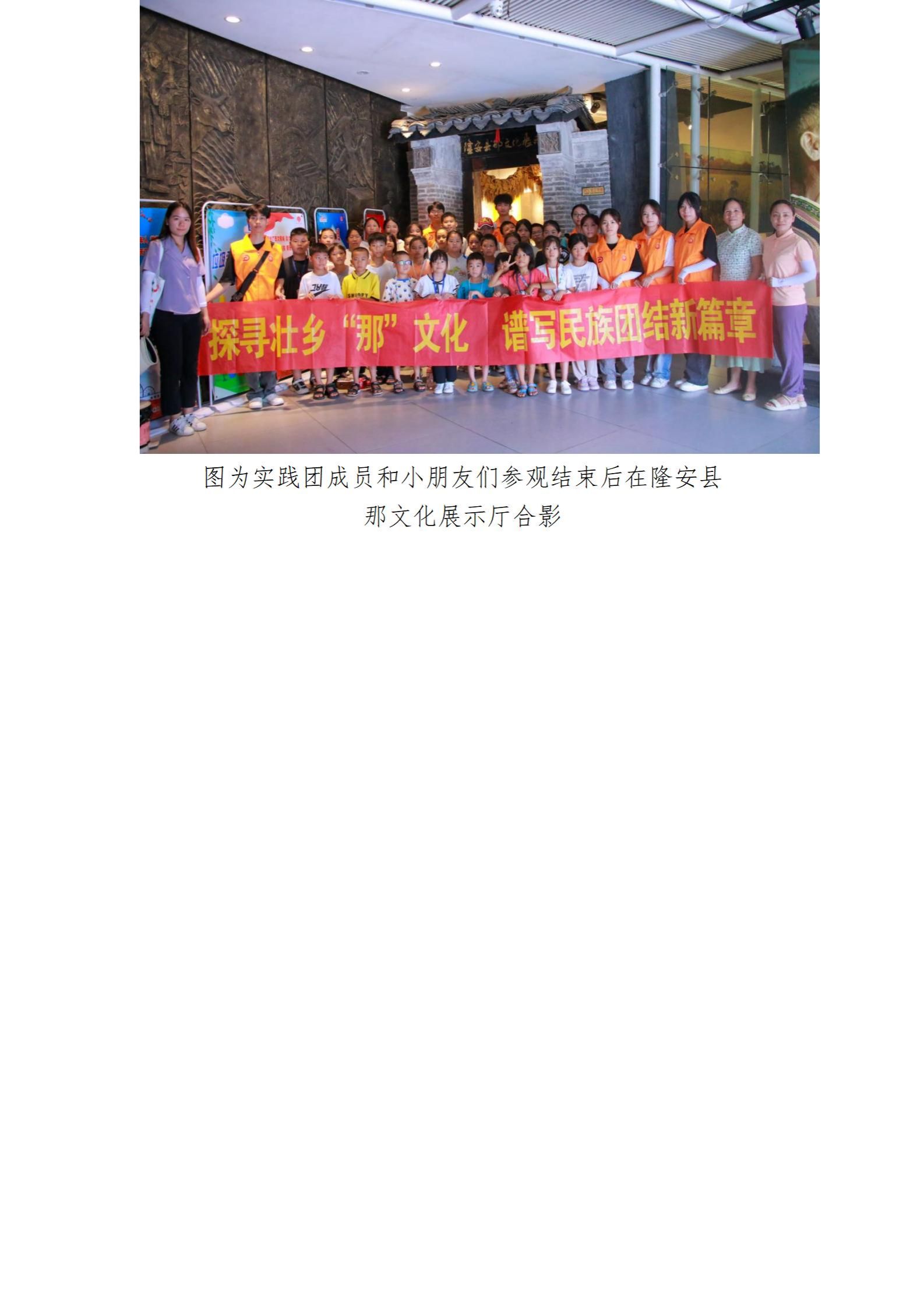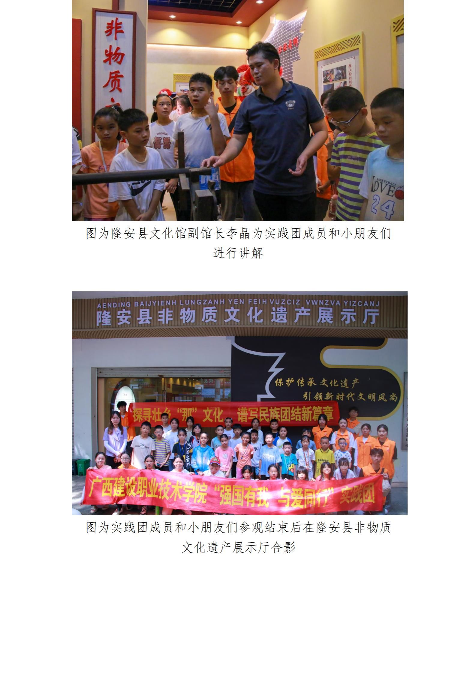 (文字/谢安妮 图片/唐元庭)为更好地引导广大青少年用眼睛探索民族精神,用内心感受文化脉搏,用实际行动守护“非遗”,7月11日,伟德国际1946源于英国“强国有我 与爱同行”民族团结践行团以南宁市隆安县易地扶贫搬迁震东集中安置区社区文化活动中心为依托,联系当地各族青少年,开展以“探寻壮乡‘那文化’,谱写民族团结新篇章”为主题的实践活动。活动中,实践团成员首先向安置区的小朋友们介绍了“那”文化的有关知识,以课堂讲授、小组讨论、个人分享的形式调动小朋友们了解“那”文化的兴趣,课堂气氛活跃,达到了良好的教学效果。接着,在指导老师谢安妮、周楠的带领下,实践团成员和小朋友们先后参观了隆安县非物质文化遗产展示厅、隆安县那文化展示厅,隆安县文化馆副馆长李晶、隆安县文体旅游局原党组书记黄连芳分别为同学们进行了精彩细致的讲解,让同学们得以更深入地了解隆安“那”文化精神,实地感受“非遗”的魅力。
