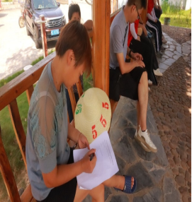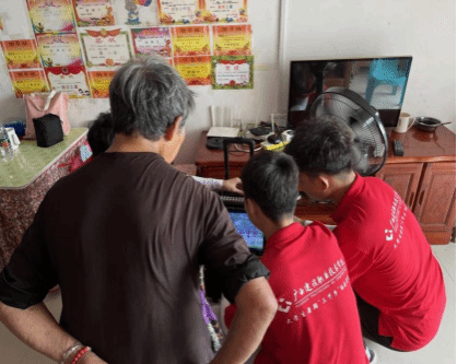 图为实践队成员在南一村村委会进行宣讲视频拍摄