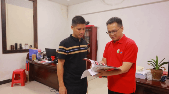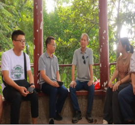 图为全州县才湾镇南一村党支部书记王军荣与实践队在毛竹山村座谈交流