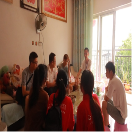 图为实践队成员走进居民家进行民情民意调查、宣传红色文化