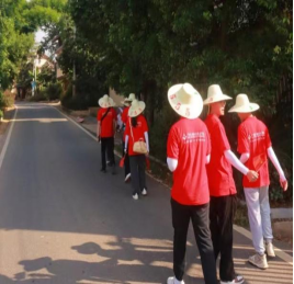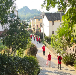 图为实践队徒步前往南一村和毛竹山村感受红色乡村巨大变化