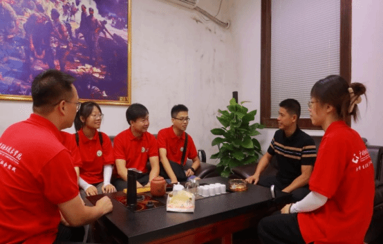 图为实践队在全州红军长征湘江战役文化保护传承中心与周运良主任进行座谈
