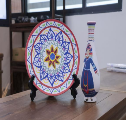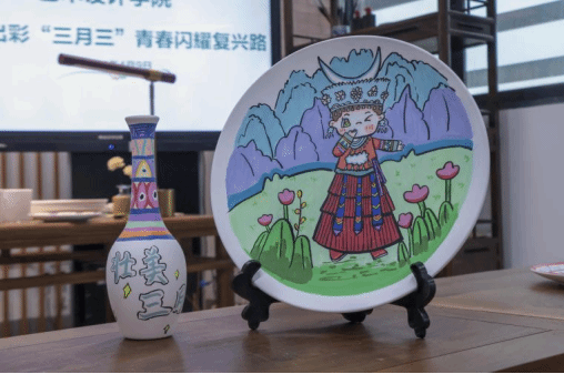 活动中,同学们发挥创意,结合专业所学,在陶瓷杯、陶瓷盘、花瓶等原材料上进行民族元素文创彩绘。活动现场,同学们热情高涨,用画笔巧妙地将“三月三”特有的民族图案、色彩等元素融入彩绘作品中。