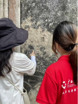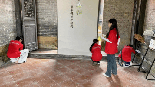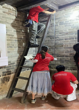 7月15日,实践团成员对刘永福那良故居进行实地测绘,为那良古镇古建筑进行数据收集,共同探讨古建筑文化振兴。