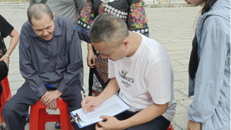 实践团走访当地居民,调研乡村发展现状,了解居民对当地古建筑、民族文化、民风习俗、英雄人物事迹等的认识,同时向居民科普古建筑文物保护的重要性。