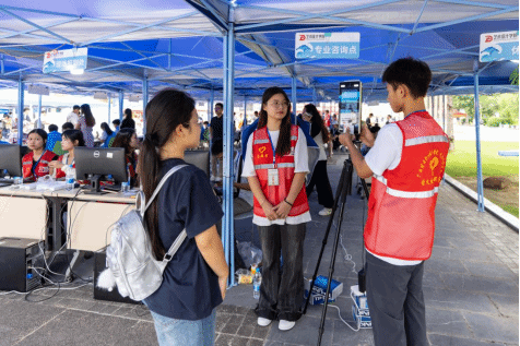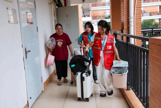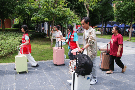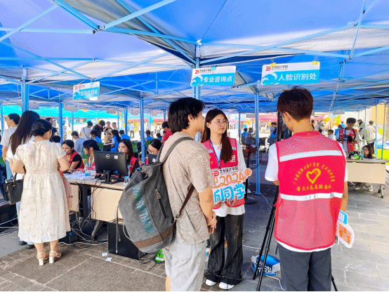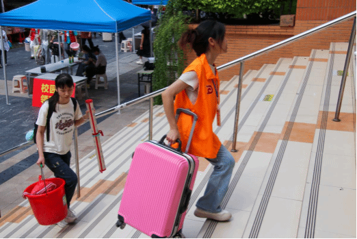 此外,一群身着马甲的志愿者给迎新现场增添了一道亮丽的风景线。他们穿梭在人群中,为新生提供引导、搬运行李、解答疑问。无论是烈日下还是细雨中,他们都坚守岗位,他们的身影,成为了连接学院与新生之间的坚实桥梁。