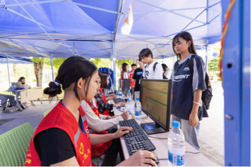 清晨,学院的迎新大本营已经热闹非凡。家长们携着满怀期待与不舍的心情,陪伴着孩子步入这扇通往梦想的大门。学院迎新大本营内设置了引导区、注册区、班级报到区、家长接待区、专业咨询点、党员服务区,迎新师生们面带微笑,热情地向每一位新生和家长致以问候。他们耐心地解答着家长们的疑问,引导新生完成报到流程,那一份细心与周到,给新生以家的温暖。