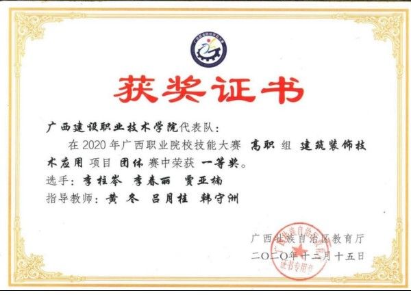 2020年广西职业院校技能大赛高职组建筑装饰技术应用赛项一等奖