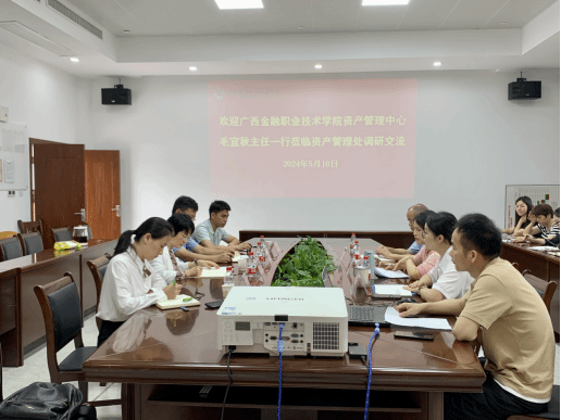 资产管理处5月11日讯(文/赵季存 图/甘静宇)5月10日上午,广西金融职业技术学院资产管理中心毛宜秋主任一行莅临学校交流指导,资产管理处全体工作人员参加了座谈会。
