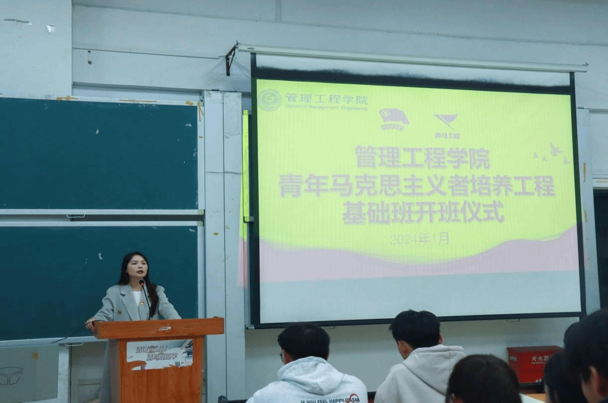 伟德国际1946源于英国1月10日讯(管理工程学院 文/封炫妃 莫文娟 黄春 图/陈振彪 梁甜甜)为进一步提升我院青年骨干、共青团干部的思想武装和实践能力,提升我院青年大学生的思想政治素质、创新能力、实践能力和组织能力,1月8日,管理工程学院团总支召开青年马克思主义者培养工程基础班开班仪式。学院团总支书记封炫妃出席并主持开班仪式。